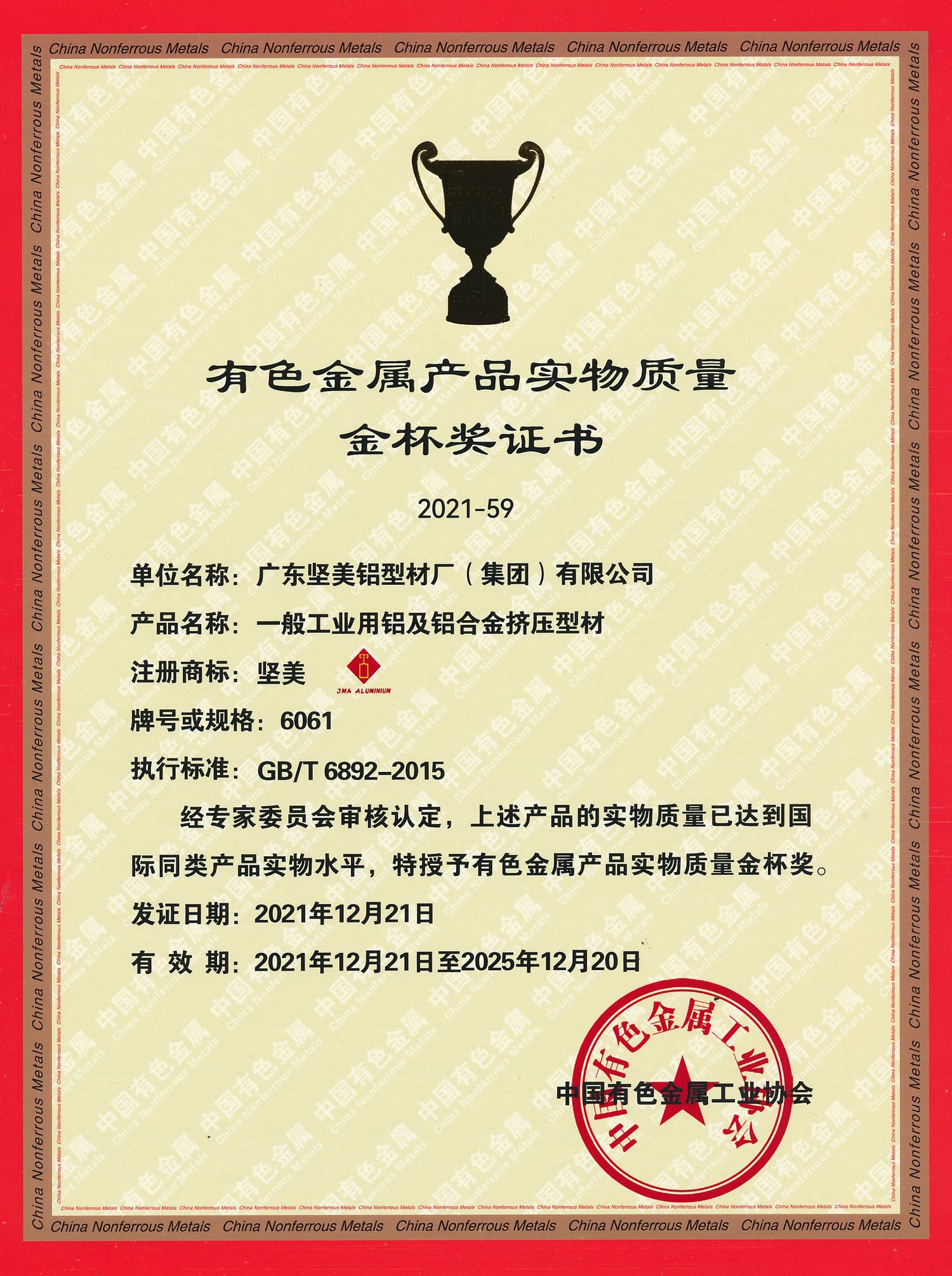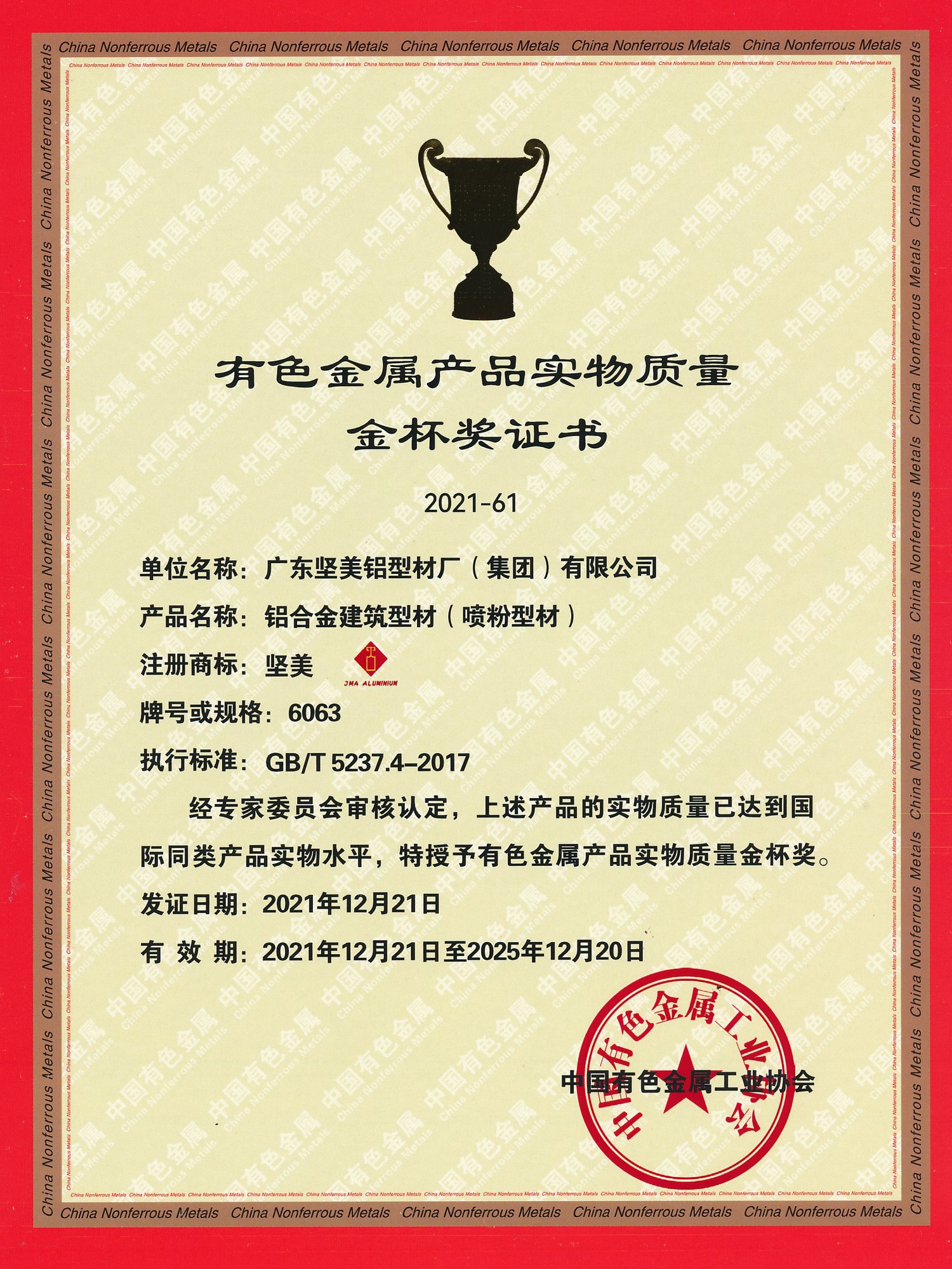 2021年金杯奖证书 喷粉型材 中文(中国有色金属工业协会)