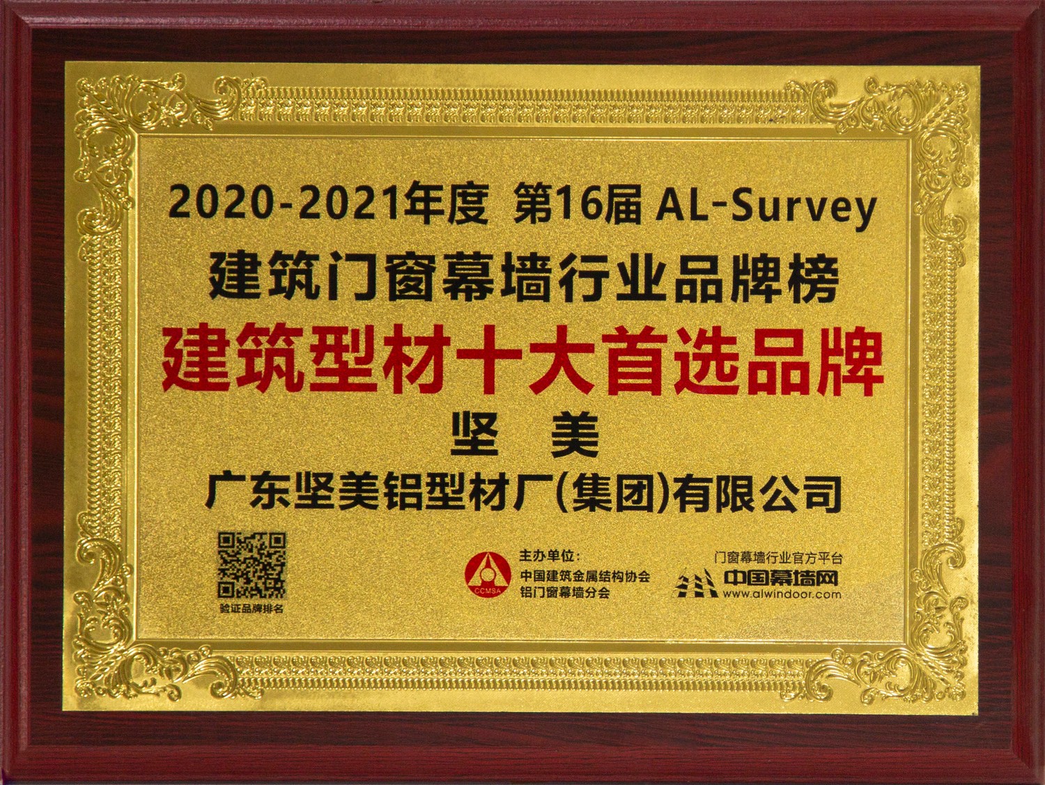 2020-2021年度 第16届AL-Survey建筑门窗幕墙行业品牌榜 建筑型材十大首选品牌